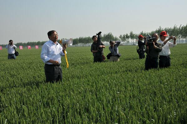 为加快小麦品种创新,促进粮食核心区建设,5月14日,河南省科技厅、河南省农业厅和我校在鹤壁市浚县王庄乡召开小麦新品种百农矮抗58高产观摩会。中国科学院、中国工程院程顺和、盖钧镒、刘兴土等院士专家,科技部、农业部领导,河南省省政府领导,河南省科技厅、农业厅、教育厅领导,河南科技学院领导,种子企业代表及农业科技人员约150人参加了观摩会。观摩会由河南科技学院承办。