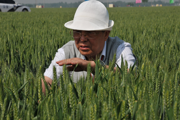 程顺和院士在认真观察“百农矮抗58”优良特性