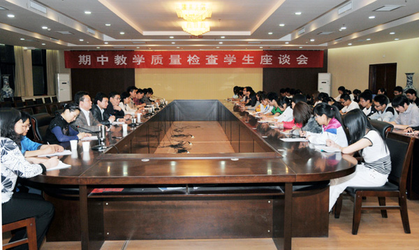 为全面了解本学期教学工作运行情况,发现并解决教学工作中存在的问题,促进教、学、管的协调发展,进一步做好教学工作,5月4日,教务处、教育教学督导办公室分别举行了期中教学工作检查教师座谈会和学生座谈会。