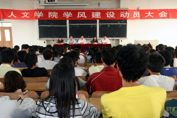 会上,人文学院党委副书记任建成、副院长周全星分别宣读了《人文学院学风建设实施意见》和《人文学院本科生导师制实施方案》。人文学院党委书记于桢做动员讲话,对开展学风建设活动的重要性、工作重点以及如何做好学风建设进行了具体阐述。他希望广大师生能够认真学习贯彻会议精神,积极开展学风建设工作,不断促进人文学院学风、教风建设,全面提升教育教学质量。