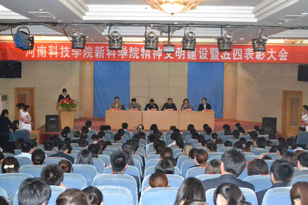 为表彰在2010年度精神文明建设和团学活动中涌现出来的先进集体与个人,部署2011年精神文明建设各项工作,4月28日下午,新科学院召开了2010年度精神文明建设暨“五四”表彰大会。校长助理、新科学院院长梅宪宾博士,党委书记旦勇刚,党委副书记冀红举,副院长孟丽、张涛、王洪亮出席了会议。全体教师及部分学生代表参加会议。会议由党委副书记冀红举主持。