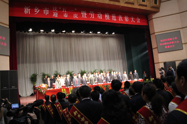 4月28日上午,新乡市市委、市政府隆重召开新乡市劳动模范表彰大会。大会对2010年度在新乡市各个行业做出突出贡献的个人进行了表彰,我校李新峥教授被授予“新乡市劳动模范”荣誉称号。新乡市委书记吴天君、市长李庆贵等领导为劳动模范进行了颁奖。