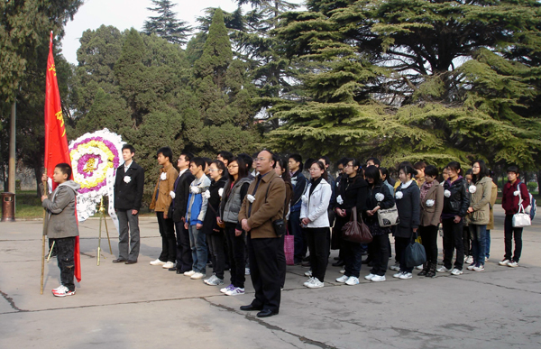 4月2日上午,细雨霏霏,经济与管理学院学生党员和入党积极分子代表一行50余人,在团委吴丹老师的带领下怀着崇敬之情,戴着自己亲手制作的小白花,来到新乡市烈士陵园,举行了“缅怀先烈,继承遗志,以实际行动迎接建党90周年”的活动,缅怀先烈,寄托哀思。