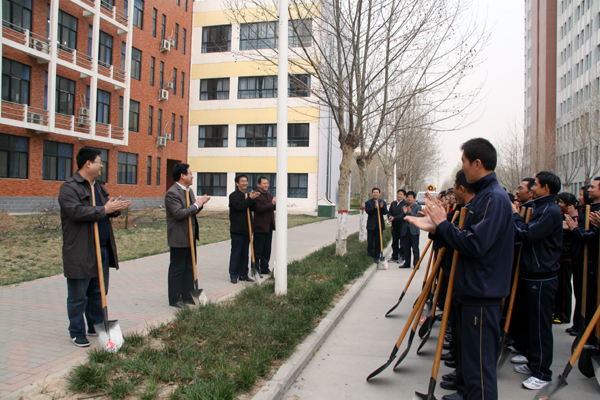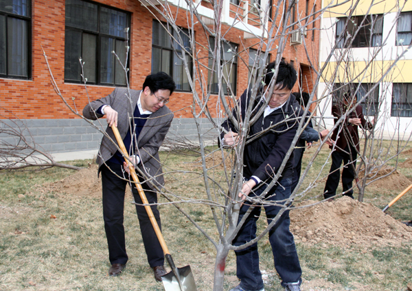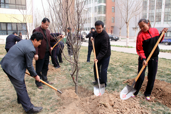 春回大地暖,正是植树时。4月1日下午,新疆哈密培训班的同学们来到八号楼南侧园地举行义务植树活动。校党委副书记郭海波、副校长冯启高,新疆培训班驻我校领队杨世德,校团委书记郭立、后勤管理处处长李新、副处长陈桦,成教学院副院长、培训班班主任杨景旗等与同学们一起挥锹铲土,共同植下“新疆哈密第一期培训学员纪念林”,为我校再添一处新绿。