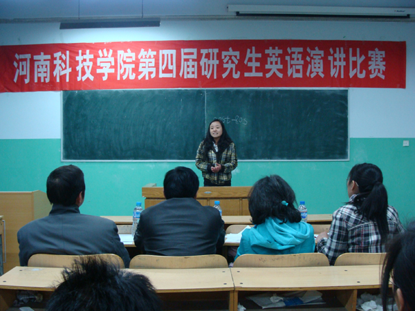 3月20日晚,由研究生工作部、研究生处主办的我校第四届硕士研究生英语演讲比赛在二号教学楼103教室举行。由研究生各年级推荐的共14位选手参加了比赛。本次比赛旨在激发研究生学习英语的积极性,提高我校硕士研究生的英语实际应用能力和口语交流水平。