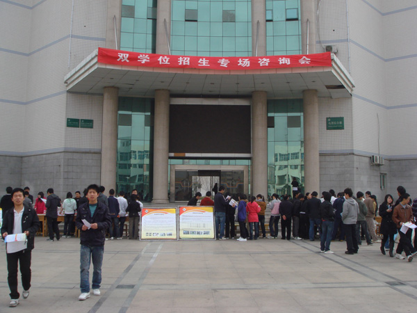 咨询会上,广大同学纷纷就双学位的报名条件和培养方式等问题进行了现场咨询。教务处和相关学院的领导和专业教师为到场同学发放了千余份宣传资料,耐心解答同学们的各种疑惑,热情鼓励大家在慎重考虑自身条件的基础上大胆挑战自我,积极拓宽知识面,充分挖掘自身的学习潜力,为实现早日成材做出更大努力。招生咨询会的成功举办,对我校首次实施双学位教育工作起到了极大的推动作用。