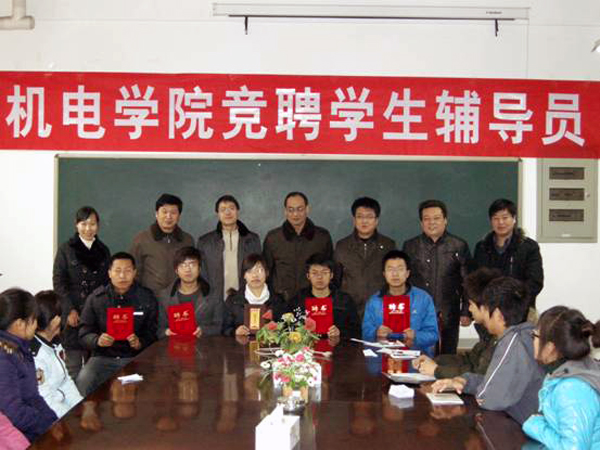 经过自愿报名、择优筛选等程序后,共有7名高年级学生党员干部参加了最后的竞聘答辩会。经过演讲、现场回答问题等竞聘环节,王欢欢、郭俊娟、徐志华、申红吉、张布丁5名同学以优异的表现,脱颖而出,被选聘为机电学院“学生辅导员”,聘期半年。