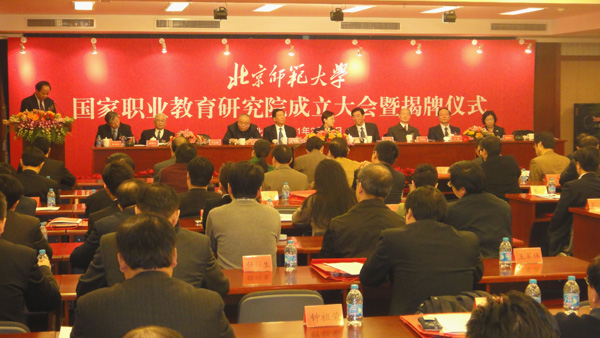 2月20日,国家职业教育研究院在北京师范大学成立,我校校长王清连教授应邀参加成立暨揭牌仪式。教育部副部长鲁昕、人力资源和社会保障部副部长王晓初、国务院参事室主任陈进玉、教育部原领导王明达、张天保、王湛和教育部有关部门、有关高校以及部分全国职业教育专家、学者300多人参加了会议。