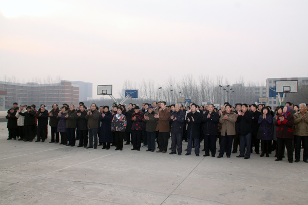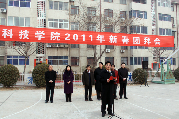 寅虎辞旧岁,玉兔迎新春。2月3日(农历大年初一)上午9时,我校2011年春节团拜会在西区篮球场举行。校党政领导严全治、王清连、张玉珍、梁赖、张民校、窦玉玺、冯启高等与在校的教职工300余人欢聚一堂、辞旧迎新,共贺新春佳节。