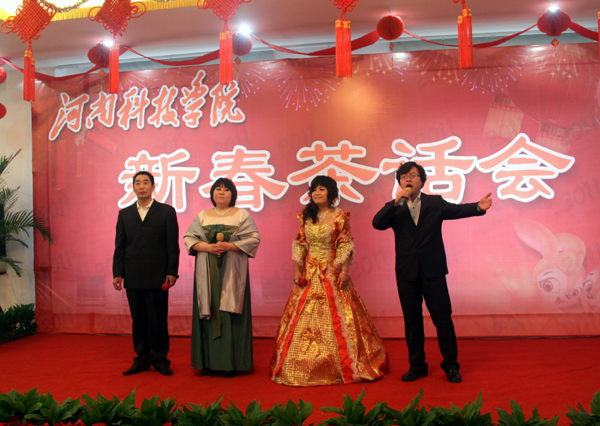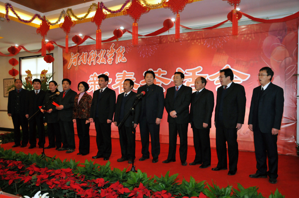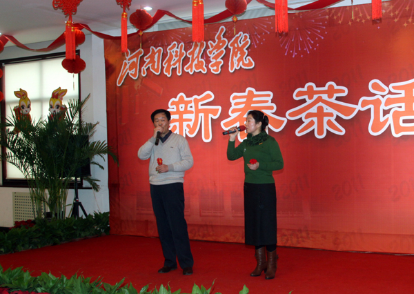 大地春回百花竞,一元复始万象新。1月14日下午,我校2011年新春茶话会在学术交流中心二楼大厅隆重召开。全体校党政领导出席茶话会,各单位党政负责人,获得省级以上科技、教学成果奖、省级以上荣誉称号、省级以上项目主持人中的教授、博士和教师代表,民主党派、无党派人士代表,离退休职工代表,工人代表等120余人参加了茶话会。