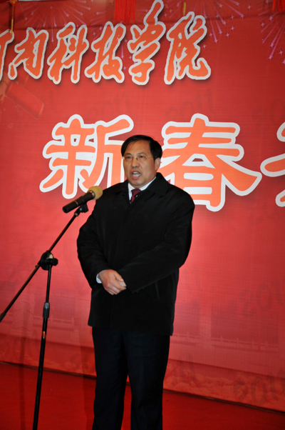 校党委书记严全治致新春贺词。他首先代表校党委、校行政向大家致以新春的祝福,祝大家新年快乐、工作顺利、合家幸福、万事如意!严全治书记指出,2010年是“十一五”的最后一年,也是我校推进教学研究型大学建设的重要一年。全校师生员工同心同德、真抓实干,主要在九个方面取得了显著成绩:一是按照大学设置标准,科学制定了学校《“十二五”事业发展规划》,并在四届二次教代会上审议通过,为推进教学研究型大学建设奠定了坚实基础;二是教育教学质量稳步提高;三是师资队伍建设取得新突破;四是学科建设取得新突破;五是科学研究取得新成就;六是多形式开放办学取得新进展;七是后勤保障能力不断增强;八是党建和思想政治工作取得新成效;九是更加关注民生,促进公平正义。