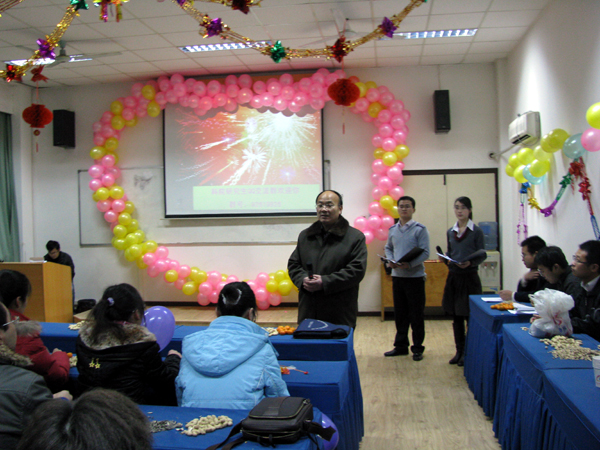 金虎欢歌辞旧岁,玉兔起舞迎新春。12月28号晚,由研究生会主办的2011年硕士研究生元旦联欢晚会在学术交流中心二楼教室举行。我校08、09、10级全体研究生,联合培养研究生和特邀本科生等共计70余人参加了晚会。研究生工作部部长郜庆炉教授、研究生会秘书长张浩与全体研究生喜迎新年。
