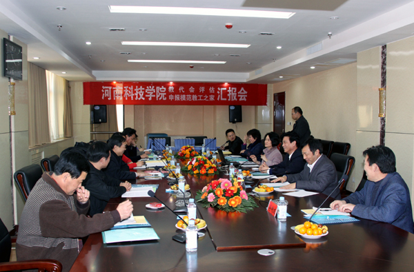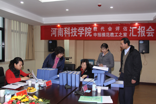 12月20日下午,以河南师范大学党委副书记、工会主席王海旺为组长、省教育工会领导及兄弟院校工会主席组成的专家考评组一行6人莅临我校,代表省教育工会对我校“模范教工之家”创建工作和教代会工作进行检查评估。下午3:00,汇报会在我校行政楼901会议室举行,校党委书记严全治、校长王清连和校党委副书记、工会主席张玉珍出席了评估汇报会。会议由校长王清连主持。