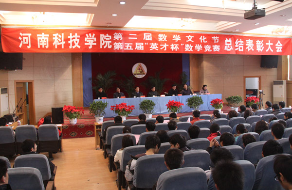 数学系主任郭运瑞做了“关于第二届数学文化节、第五届‘英才杯’大学生数学竞赛的总结报告”。第二届数学文化节历时40天,举办了“数学游艺活动、数学文化图片展和数学人文风采展、第五届‘英才杯’大学生数学竞赛、数学文化系列报告、数学应用系列报告、数学电影欣赏、数学知识技竞答”等主题活动。活动在校领导的关心、支持和各院系的帮助下取得了圆满成功。