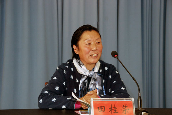 田桂荣老师用朴素的语言、淳朴的感情讲述了她20年如一日,为环保事业倾力奉献的感人事迹。多年来,她走街串巷,自费30余万元回收废旧电池70余吨;为宣传环保,走遍全国各地,不辞辛苦地宣传环保知识和理念;她从自身做起,宣传和种植无公害农作物。为使更多的人重视环保,她创办了全国首家农民环保网站,成立了全国首个由农民创办的环保志愿者协会,设立了河南省第一条民间环保举报热线。田桂荣老师深情地告诉大家,天是房、地是家,为环保奉献一生,自己无怨无悔。