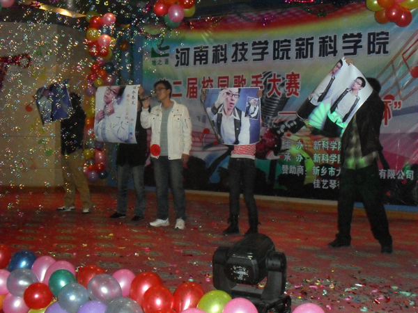 比赛在激昂的乐队演奏中拉开帷幕。《可惜不是你》、《上海滩》、《木兰星》……或激昂、或抒情、或轻快,一曲曲动听的歌曲和着现场观众挥舞的荧光棒和掌声,将现场渲染的分外热烈。比赛间隙,信工学院党委副书记徐武和新科学院的何凡老师更是即兴高歌,赢得全场观众的一片欢呼声。