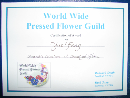 园林学院王月芳同学在国际压花比赛中获奖