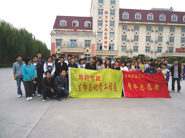 为弘扬中华民族敬老爱老的传统美德,在重阳节来临之际,我校青年志愿者协会、“大手拉小手”协会以及新科学院生化系的同学们一起来到了新乡市“夕阳红养老院”探望老人,为重阳增添了一份浓浓的敬老情。