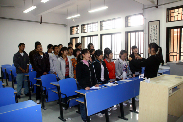 人文学院同学们正在进行红歌排练