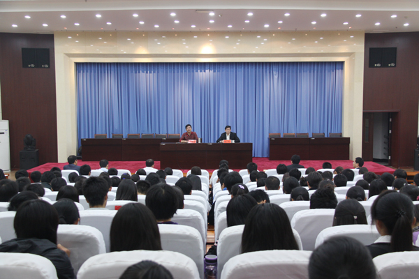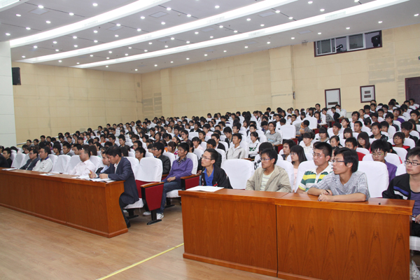 部分院系分管学生工作的党委副书记、各院系新生辅导员和新生代表300余人聆听报告