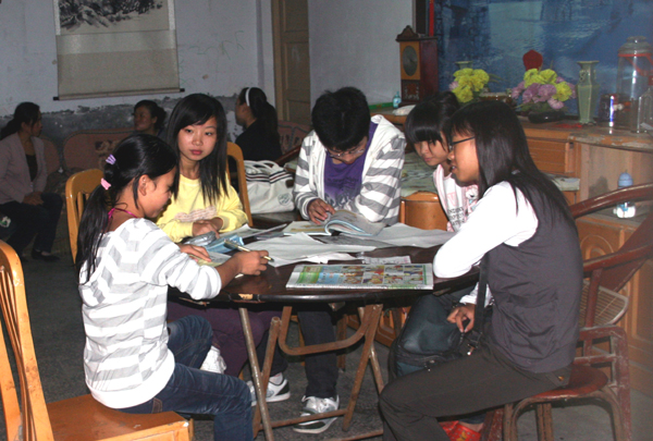 义务家教社团的社长郭亚洲说,义务家教社团成立于2002年,如今人数已有100余人,他们分4个小组,每周末按顺序为村里的孩子辅导功课。