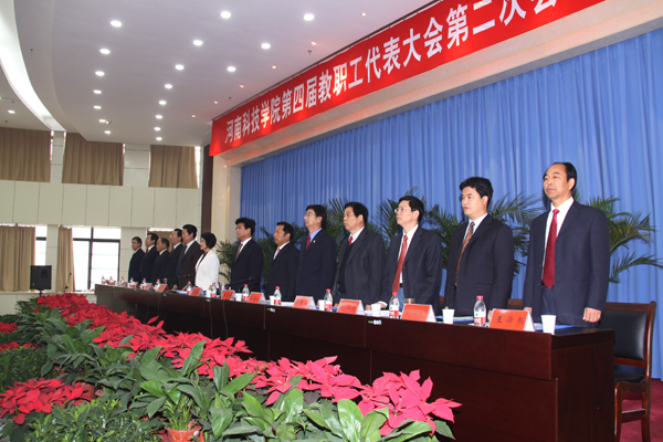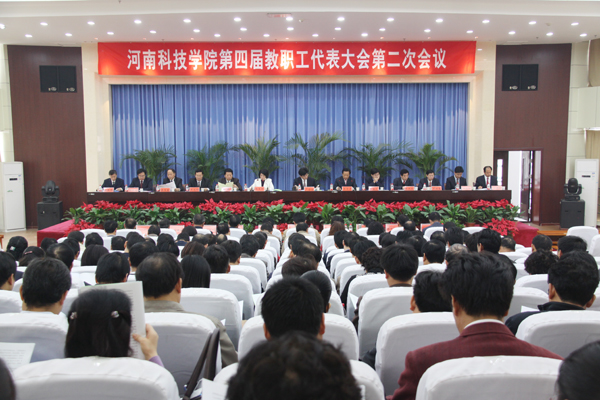 9月30日,校第四届教职工代表大会第二次会议(以下简称“教代会”)在行政楼三楼多功能报告厅隆重召开。校党政领导严全治、王清连、张玉珍、郭海波、梁赖、张民校、王文鹏、刘兴友、窦玉玺、刘荣增、冯启高、王舜书、宋亚伟等出席大会。“教代会”130余名代表参加了会议。