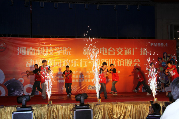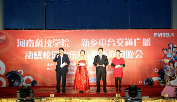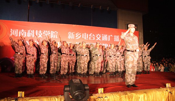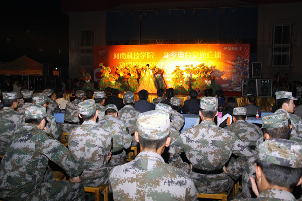 9月26日晚,我校与新乡电台交通广播联合举办的“动感校园欢乐行”迎新联谊晚会在西操场隆重举行。副校长窦玉玺、新乡广播电台台长郎东升、党委宣传部部长姚刚、艺术学院党委书记张有思、校团委书记郭立、军训团团长李强同近8000名新生一同观看了演出。