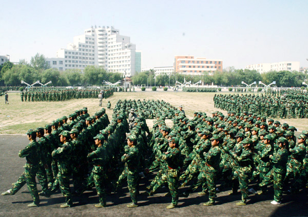 中秋,有迷彩青春相伴,一样的季节,一样的绿色,不一样的感动。下午,在 “母校您好”的风景石旁,记者听到的是响亮的军训口号,看到的是整齐划一地队伍,同时也见到了因脚伤不能参加军训的数学系统计103班的丁莉园。“挺遗憾的!”丁莉园有点失落地说。“不过,我一样能感受到军训的热情和激情,一样能够体验到‘醉卧沙场君莫笑,古来征战几人回’的豪情壮志!”