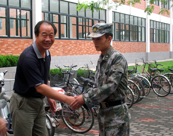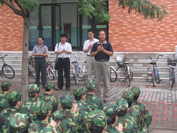 9月17日,机电学院党委书记宋建伟,院长郑竹林,副书记张玉新,副院长苏建修等领导来到新生军训场地,对帮训教官以及2010级参训新生进行了亲切慰问,并详细询问军训情况,鼓励同学们要刻苦锻炼,积极参训。