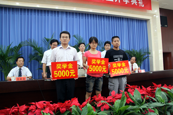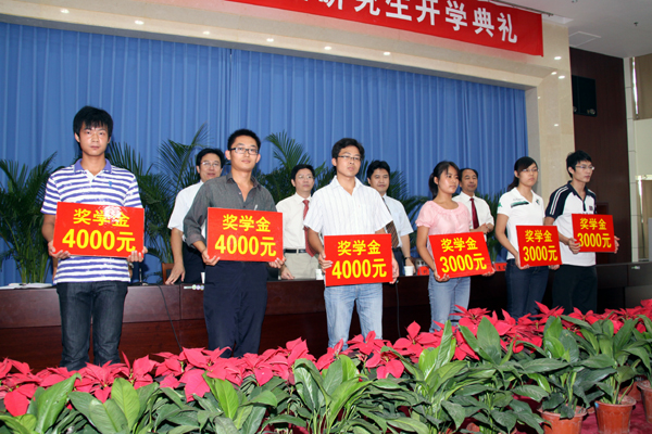 校领导为在2010年研究生入学考试初试中取得优异成绩的同学分别颁发了5000元、4000元、3000元的优秀研究生新生奖学金。