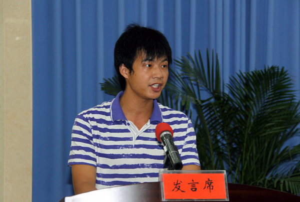 胡建和教授代表硕士研究生导师发言。他表达了对2010级硕士研究生的祝贺并鼓励大家:打好基础,积极主动地学习和从事科研;及时做好研究规划;加强交流,多与老师、同学沟通;养成良好的工作习惯;树立远大的理想,把握现在。高年级研究生代表吴亚蓓和新生代表袁峥分别代表全体研究生发言。