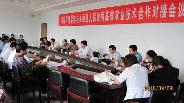 9月9日上午,我校与长垣县政府高效农业技术合作对接会议在长垣县县政府综合楼第六会议室召开。我校科技处处长王三虎以及孟丽等10位分别在蔬菜种植、食用菌栽培、冬枣种植、肉牛养殖方面有丰富理论及实践经验的专家、教授出席了对接会。长垣县各乡(镇、办事处)以及农业、林业、畜牧部门的负责同志参加了会议。
