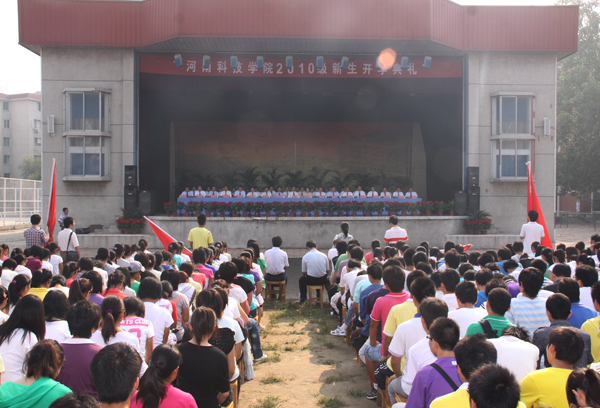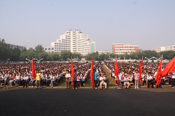 丹桂飘香,金风送爽。9月13日上午,我校在西操场隆重举行2010级新生开学典礼。校党政领导严全治、张玉珍、郭海波、梁赖、张民校、王文鹏、刘兴友、窦玉玺、刘荣增、冯启高、王舜书、宋亚伟等出席开学典礼。各相关职能部门和各院系党政负责人及2010级7800余名新同学参加了开学典礼。