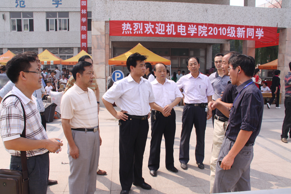 9月11日,是我校迎接2010级新同学的第一天。上午,校党政领导领导严全治、王清连、窦玉玺、王舜书等在校办、学生处、后勤处、保卫处、校团委等相关职能部门负责人的陪同下前往新生报到现场视察迎新工作。(宣传部)