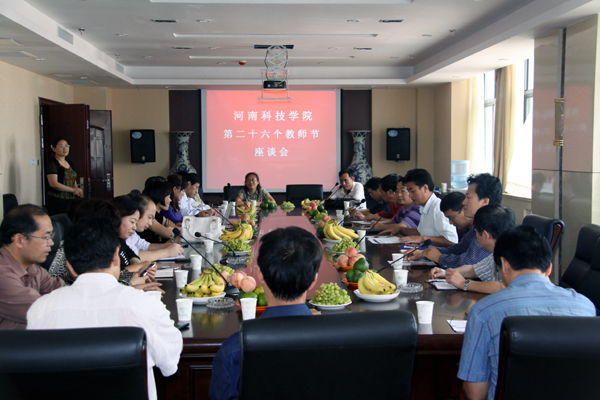 在第26个教师节到来之际,9月10日上午,我校在行政楼901会议室召开“河南科技学院第26个教师节座谈会”,副校长王文鹏、教务处常务副处长赵良、人事处副处长赵亦芳、14个教学院系院长及教授、博士、优秀教师代表30余人参加座谈会。会议由校长助理、发展规划处处长赵一鹏主持。