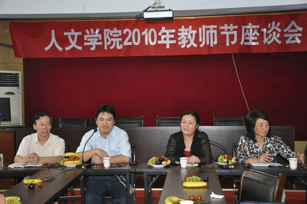 座谈会上,人文学院副院长周全星传达了学校《关于做好2010年教师节庆祝活动的通知》及《关于表彰2009——2010学年优秀教师、优秀教育工作者的决定》。李建芹院长宣读了校党委书记严全治、校长王清连《致全校教师的慰问信》。随后,教师代表崔军红、刘秋云、周培萍等先后发言。国际交流处处长赵瑞香教授对办好“对外汉语教学”提出了良好建议。