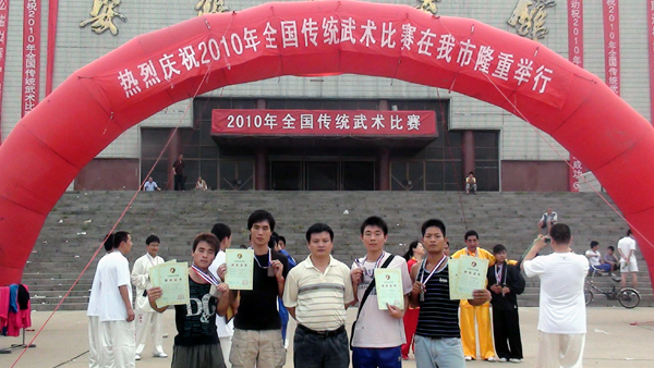 在体育系武勇成老师带领下,我校大学生武术队4名运动员面对来自全国各地的武林高手,胜不骄、败不馁,不畏艰难,勇于拼搏,敢于与武术馆校的专业运动员一较高低。经过顽强拼搏,英勇奋战,我校体育系学生王振威、任鹏、杨斌、张嘉旭等同学获得了3个二等奖,4个三等奖的好成绩,超额完成了赛前预定任务,展现了敢打敢拼、赛出水平、赛出风格的良好精神风貌,为我校争得了荣誉。