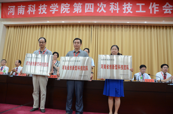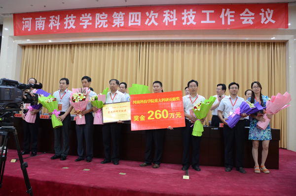 校领导向“河南科技学院重大科研贡献奖”获奖团队颁发荣誉证书