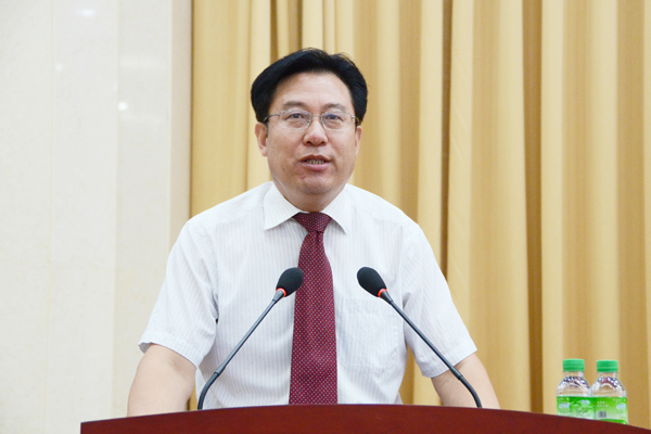 副校长窦玉玺宣读《河南省人民政府关于嘉奖河南科技学院和茹振钢教授的通报》