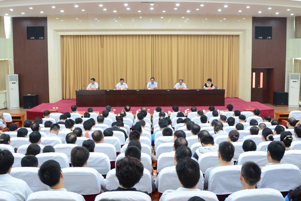 7月7日,我校在办公楼三楼报告厅召开校领导班子和校级领导干部2013年年度考核会议。省委考核组组长、省社科联党组书记、副主席何白鸥,考核组成员郝金超、刘振海、高歌、赵志明、腾飞出席会议。全体校级干部,学校中层正职,省级以上党代表、人大代表、政协委员、省辖市以上民主党派负责人、享受国务院特殊津贴专家、省优秀专家,正高级专业技术人员157人参加会议。