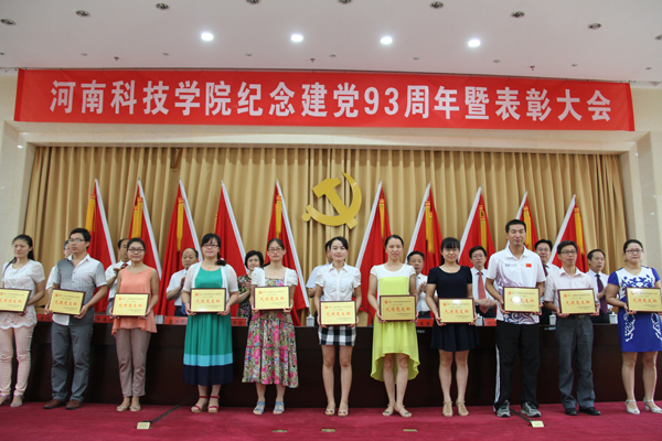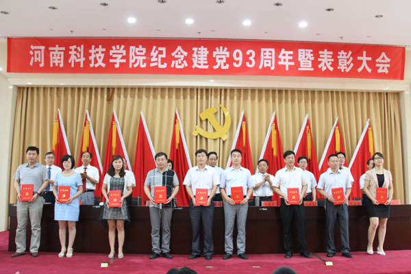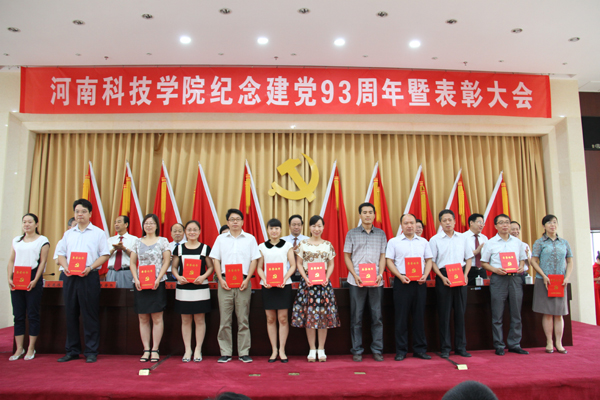 7月1日上午,我校纪念建党93周年暨表彰大会在办公楼三楼多功能报告厅隆重召开。校党政领导牛书成、王清连、张玉珍、刘兴友、窦玉玺、冯启高、王舜书、苗双虎、宋亚伟出席大会。受表彰的先进集体和个人,处级党员干部、机关科级党员干部、党支部书记、教工党员代表、辅导员代表等300余人参加了大会。