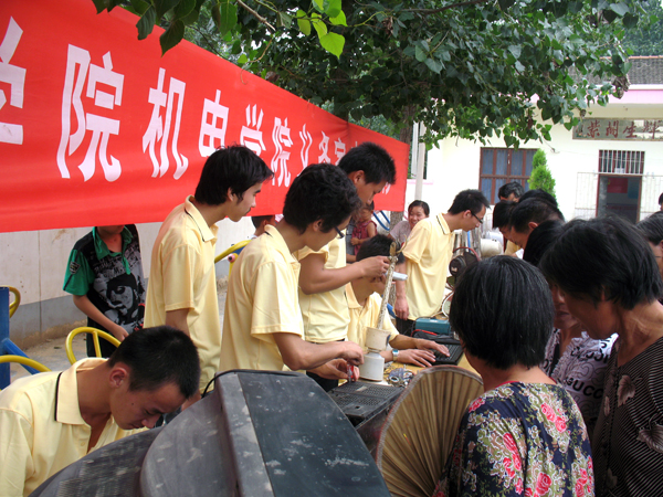 7月3日,机电学院“三下乡”社会实践团队“义务家电维修营队”一行10人在机电学院团委书记李印和家电实验室陈艳锋老师的带领下,早早地赶到长垣县满村镇宜邱村为当地乡亲送去了科技服务。