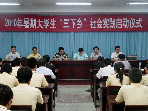7月2日上午,我校2010年大学生暑期 “三下乡”社会实践活动启动仪式在行政楼A段会议室举行。党委宣传部部长姚刚、校团委书记郭立、党委学工部副部长、学生处副处长巴新华、党委学工部副部长、学生处副处长杨宾峰、团委副书记于江傲出席会议,各院(系)党总支副书记、分团委书记、团队指导教师、重点团队及返乡实践队员代表、校学生会、校学生社团联合会学生干部代表参加了会议。会议由校团委副书记云鹏主持。