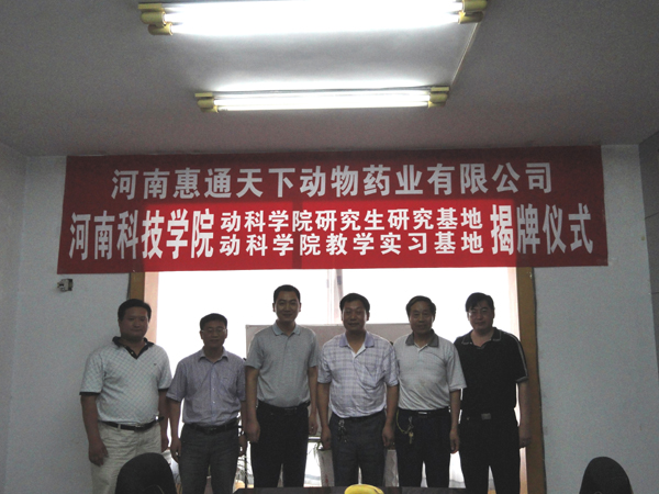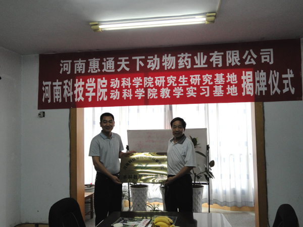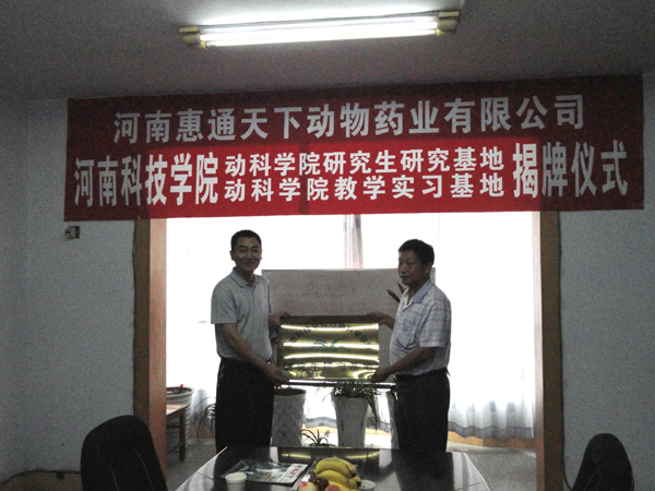 动物科学学院与河南惠通天下动物药业有限公司举行“研究生研究基地”和“本科教学实习基地”揭牌仪式