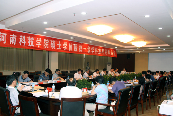 校学位委员会副主席王文鹏致词,欢迎省学位委员会巡视专家组成员到校检查指导工作。校纪委书记宋亚伟宣布了评审工作守则。校学位委员会副主席窦玉玺领学了《河南省学位委员会关于增列博士学位授权一级学科点和硕士学位授权一级学科点有关问题的通知》〔豫学位(2010)5号〕及《河南科技学院2010年申请新增硕士学位授权一级学科点评审办法》等文件精神。校长助理、研究生处处长李敬玺通报了申报工作有关情况。