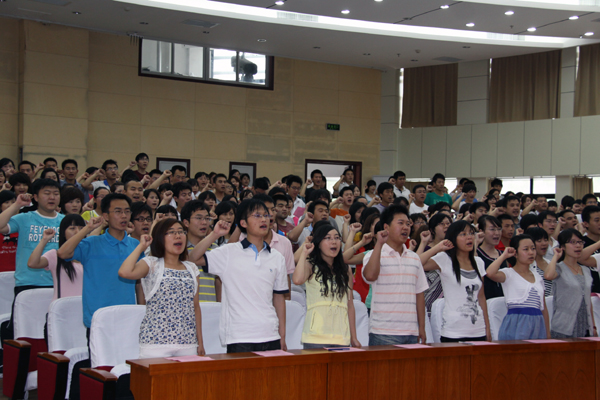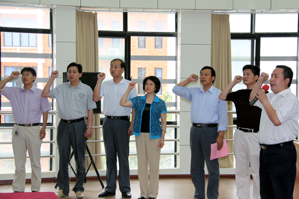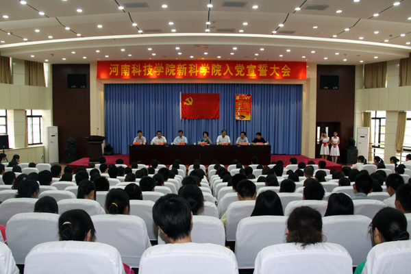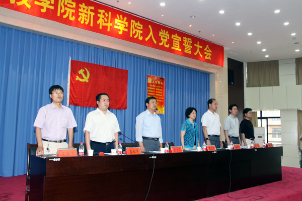 6月8日下午,河南科技学院新科学院入党宣誓大会在新行政楼三楼多媒体报告厅隆重举行。校党委副书记张玉珍,组织部副部长余鹏,校长助理、新科学院院长梅宪宾,学院党委书记张立华,副书记冀红举,学院副院长张涛、王洪亮等出席了大会。新科学院相关职能部门负责人、负责2010届毕业生的13名党支部书记和辅导员,新入党的预备党员和老党员代表等参加了大会。大会由新科学院党委副书记冀红举主持。