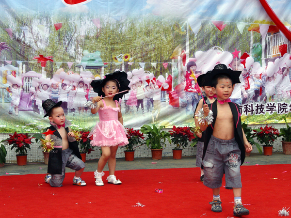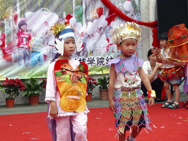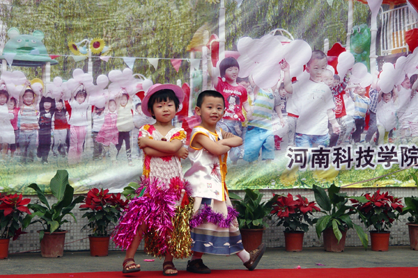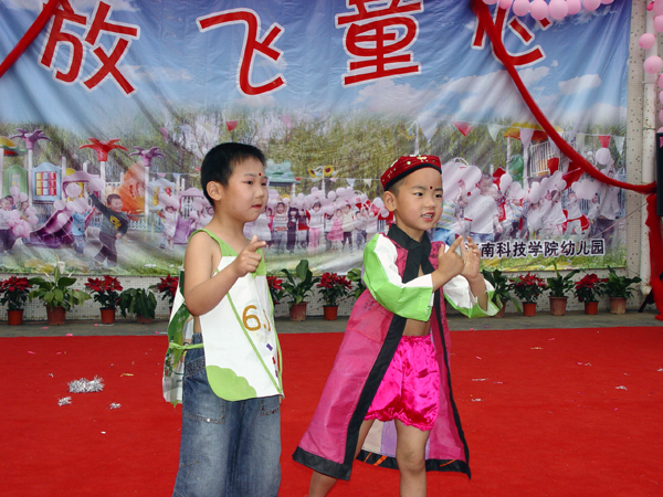 演出在喜庆、热闹的舞蹈“开门红”中拉开序幕,小演员们举手投足,格外认真,孩子们最顽皮、最活泼、最天真的一面在老师和家长面前表现的淋漓尽致;相声“我长大了”则把孩子们在幼儿园一点一滴的成长过程讲述给大家,精彩的表演不时引来台下阵阵掌声;为培养孩子们的环保意识,家长和老师们将生活中不用的布头、挂历等物品利用起来,精心设计、制作成了一件件时装,在优美的音乐声中,孩子们身着这些漂亮时装逐一登台、精彩亮相。