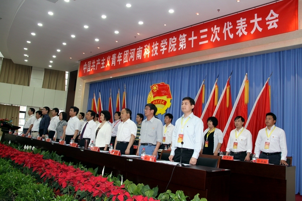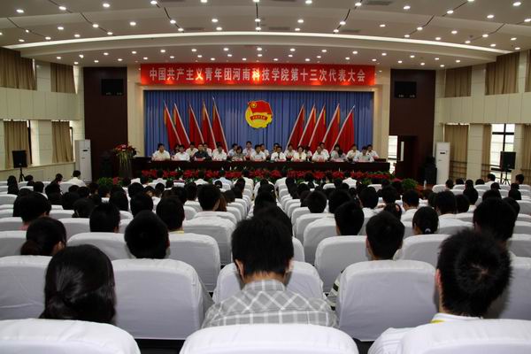 5月21日上午,共青团河南科技学院第十三次代表大会在新行政楼三楼会议室隆重召开。共青团河南省委组织部副部长刘晓琳,校党委书记严全治,党委副书记、校长王清连,党委副书记、工会主席张玉珍,党委副书记郭海波,副校长窦玉玺等出席了大会,郑州大学、河南师范大学、新乡医学院、新乡学院,河南机电高等专科学校等兄弟院校团委领导以及我校相关职能部门负责人也莅临大会现场,团代会153名代表参加了大会。大会由校团委副书记云鹏主持。