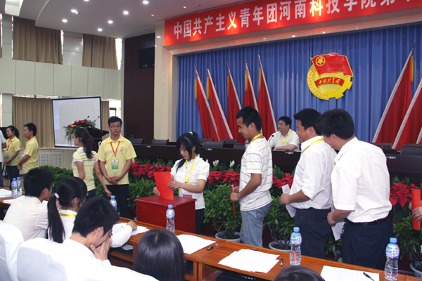 郭立同志代表上届共青团河南科技学院委员会向大会作工作报告