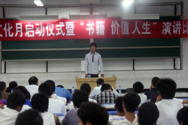 共有15名由各班级推荐的优秀学生参加了随后举行的“书籍、价值、人生”演讲比赛,体育系党政领导及部分专业老师担任评委。参赛选手选题恰当、表达准确,演讲感情真挚,声情并茂,生动地抒发了自己对书籍的情感,对读书的热爱,充分展现了当代大学生的活力与风采。精彩的演讲博得观众们一次次掌声。
